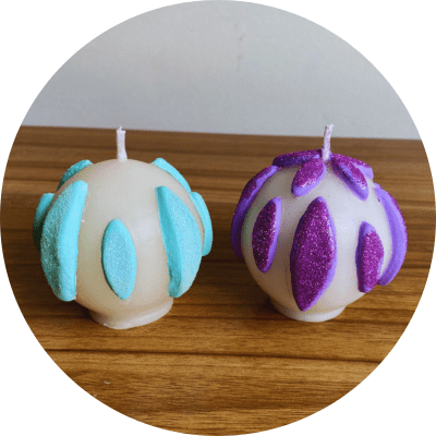 Aprenderás a elaborar velas en forma de esfera navideña y a decorarlas con cera de abeja moldeable.