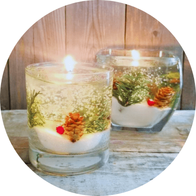 Aprenderás a elaborar velas en envase de vidrio con ceras naturales y a decorar tus envases con diseños navideños